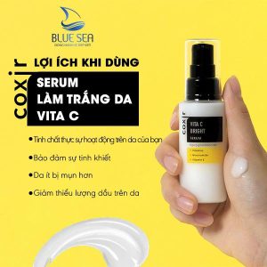 Serum làm trắng da Vita c chứa nhiều vitamin giúp giữ cho làn da sáng. Không những làm sáng da vùng tối màu, tinh chất Vita C còn cải thiện, vết thâm nám, giúp da trắng sáng từ trong ra ngoài. Thông qua tác dụng làm trắng da của vitamin. Vita C của Coxir sẽ giúp bạn luôn tự với làn da tươi sáng trở về tuổi thanh xuân.
